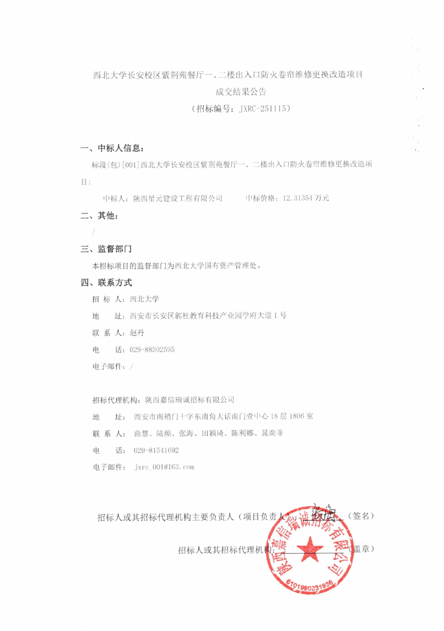 九游会在线登录官网长安校区紫荆苑餐厅一、二楼出入口防火卷帘维修更换改造项目成交结果公告