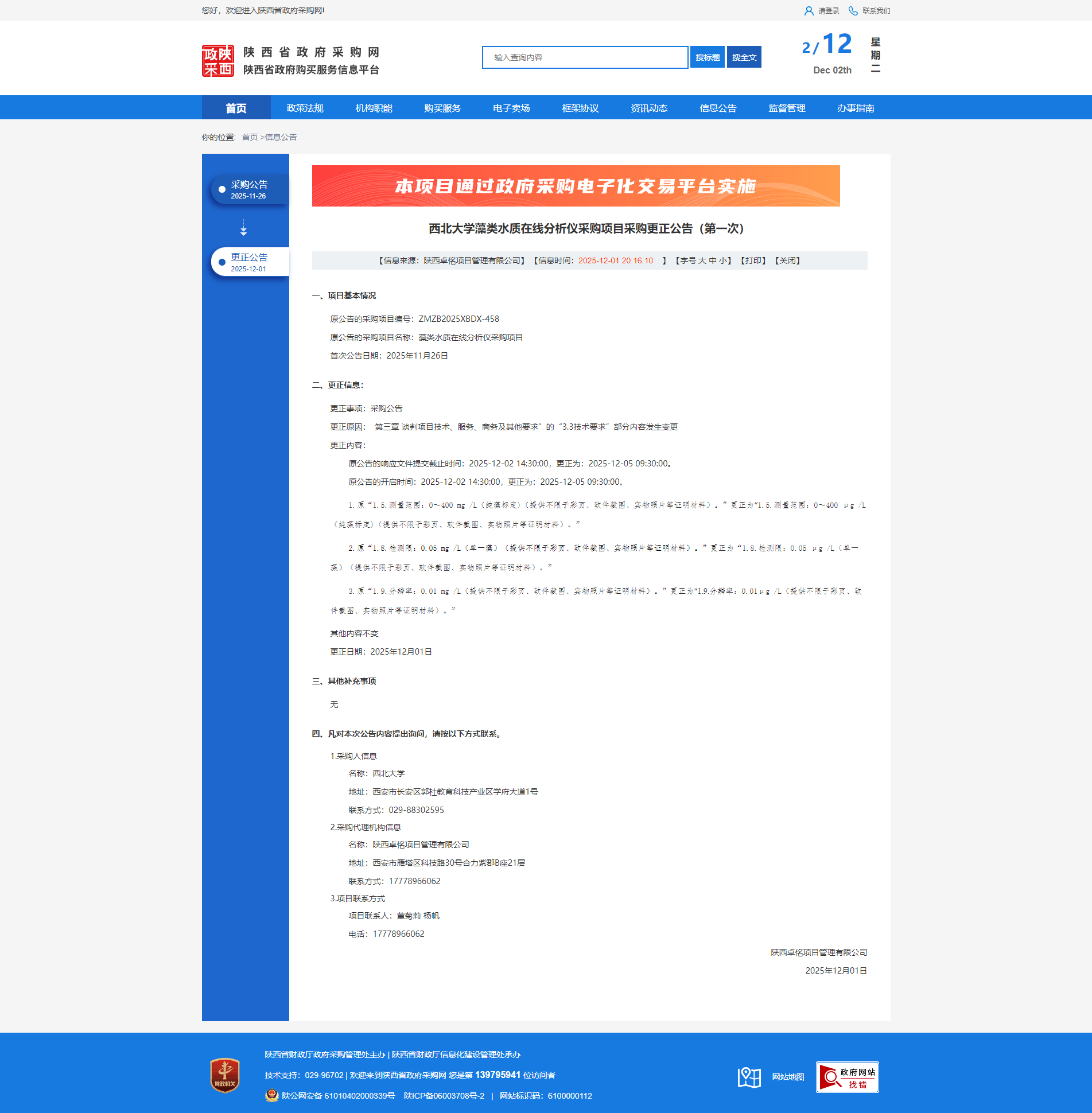 九游会在线登录官网藻类水质在线分析仪采购项目采购更正公告(第一次)