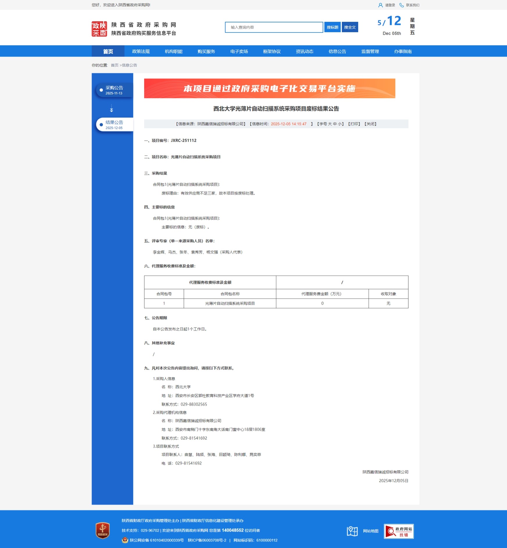 九游会在线登录官网光薄片自动扫描系统采购项目废标结果公告 作者: 编辑:国有资产管理处 时间:2025-12-05 原公告链接:https://www.ccgp-shaanxi.gov.cn/freecms/site/shaanxi/ggxx/info/2025/8a69c5539a636e42019aed20e78944bd.html?noticeType=001006¬iceId=18f9e944-d1a4-11f0-8063-08c0eb20c666